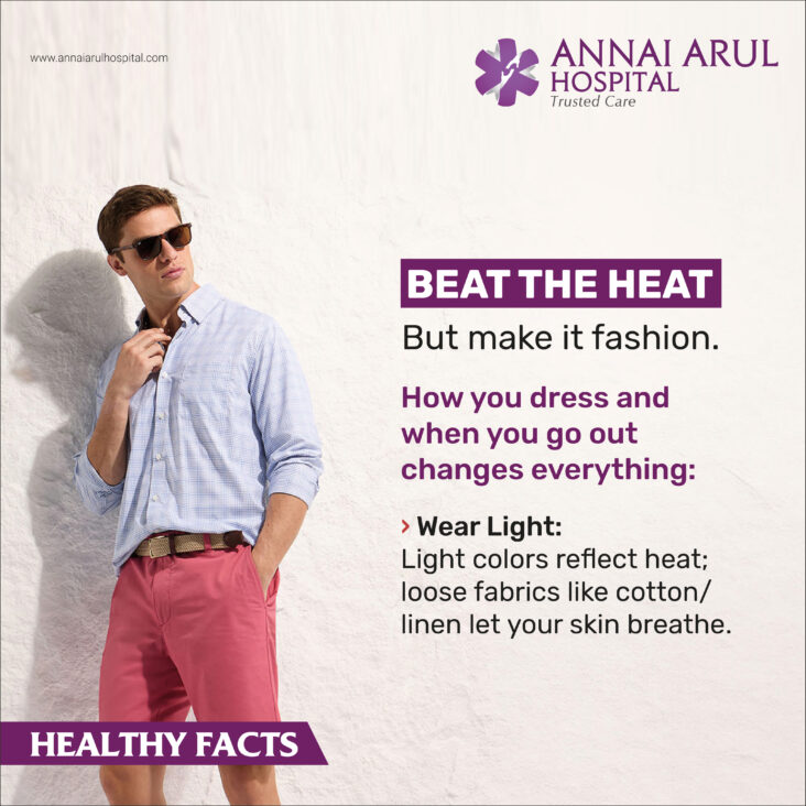 Wear Light: Light colors reflect heat; loose fabrics like cotton/linen let your skin breathe.