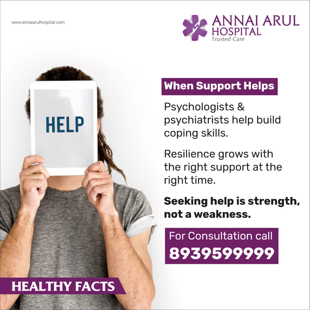 #EmotionalWellbeing #MentalHealthMatters #BuildingResilience #HealthyMind #CopingSkills #YouAreNotAlone #MentalWellness #SeekSupport #StrongerTogether #MindCare #PsychologicalWellbeing #AnnaiArulHospital