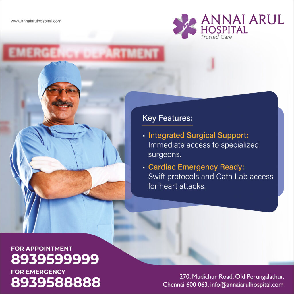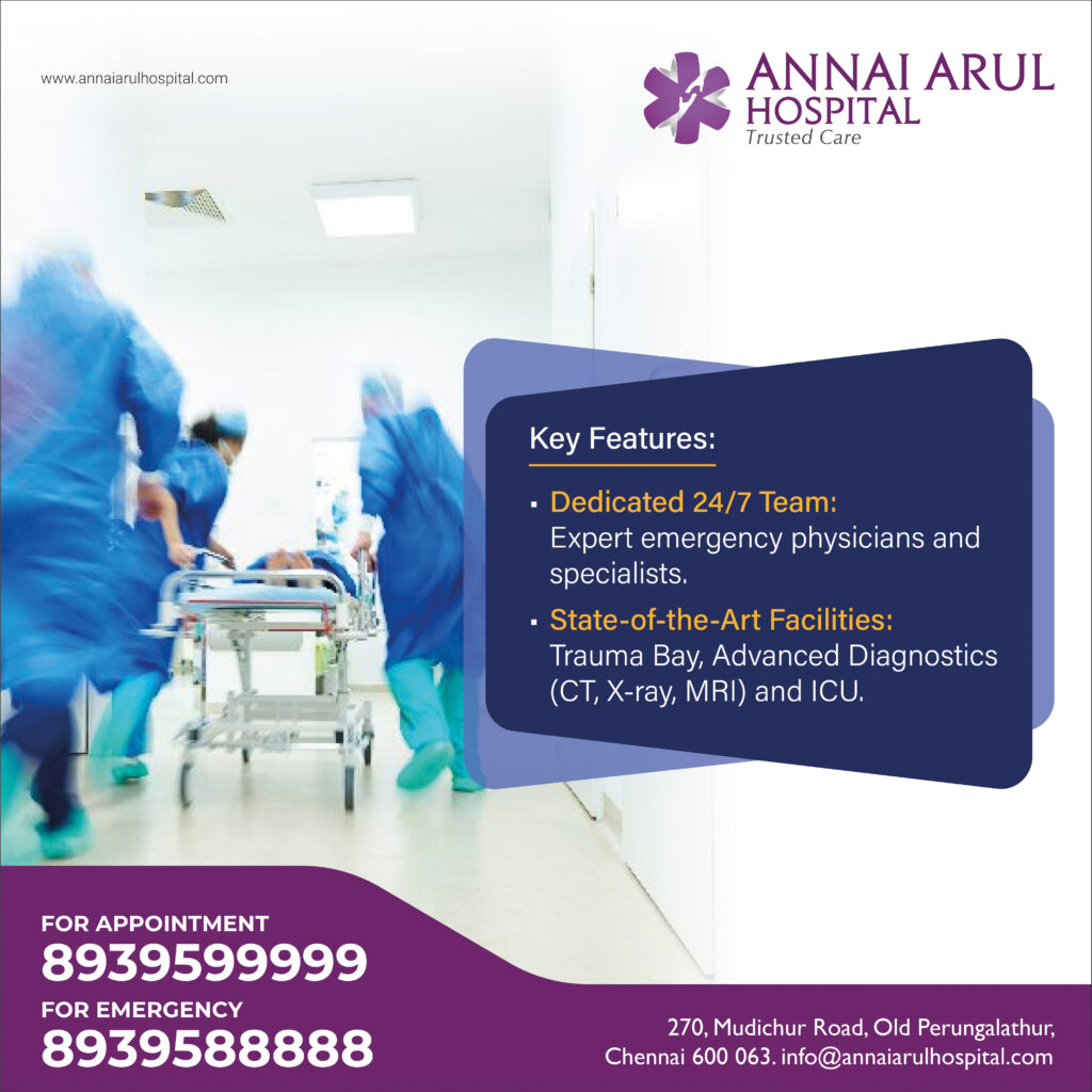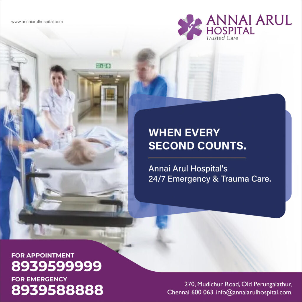 Annai Arul Hospital’s 24/7 Emergency & Trauma Care.