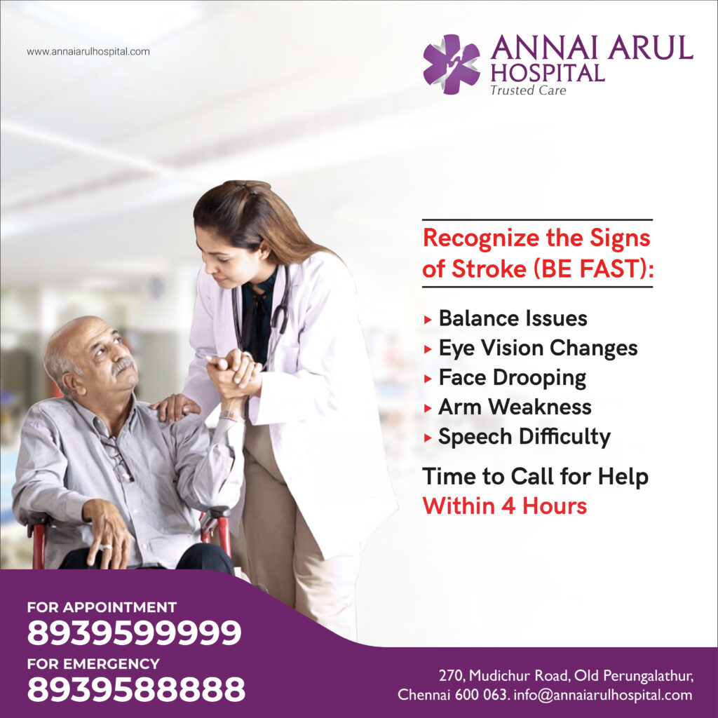 #StrokeAwareness #GoldenHourMatters #BEFAST #AnnaiArulHospital #StrokeCare #EmergencyCare #NABHHospital #ChennaiHospitals #TrustedCare #BrainHealth #ActFastSaveLives