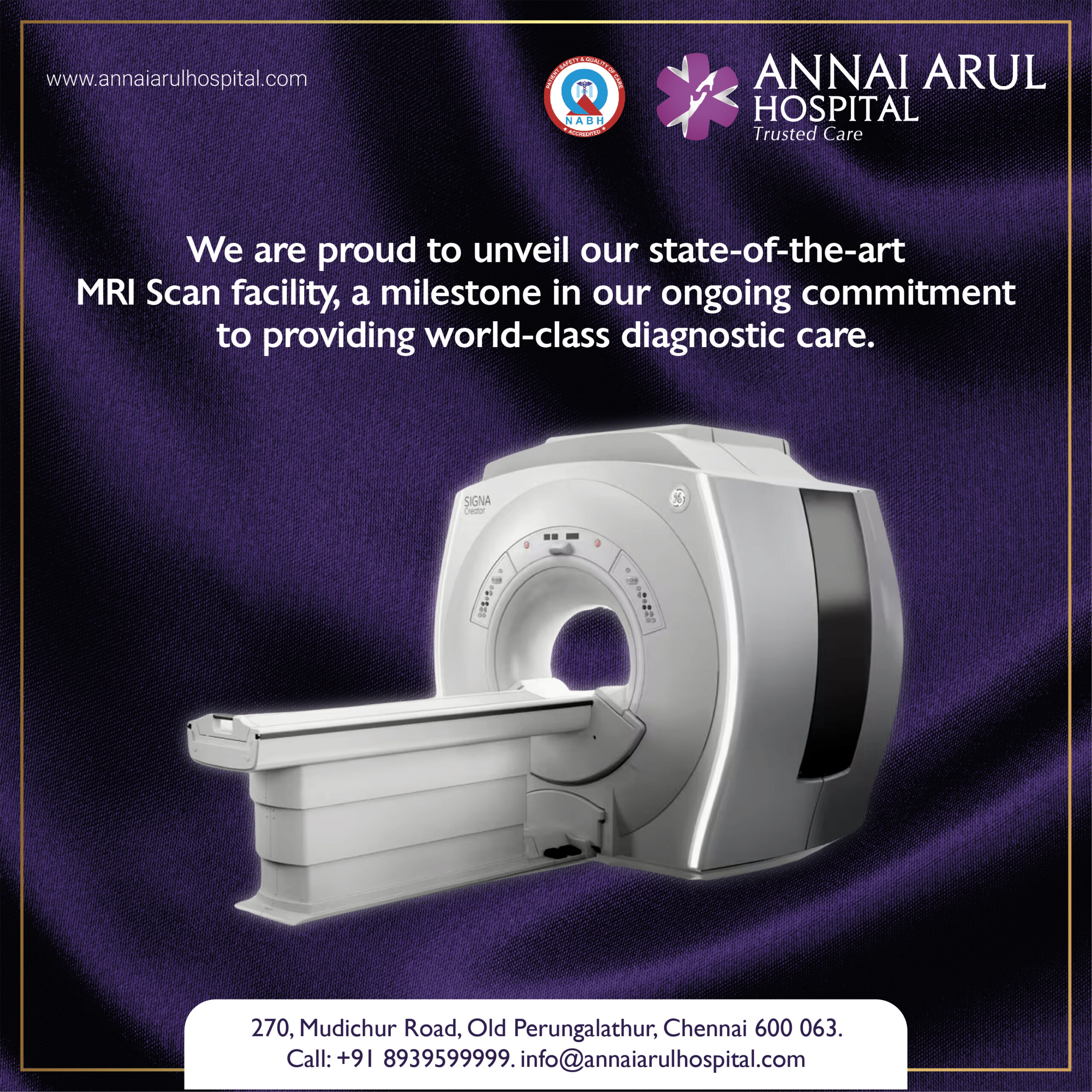 #AnnaiArulHospital #TrustedCare #MRI #AdvancedDiagnostics #ChennaiHealthcare #GESIGNA #MRIScan #DiagnosticImaging #HealthcareInnovation #SilentMRI #ChildFriendlyMRI #SafeImaging